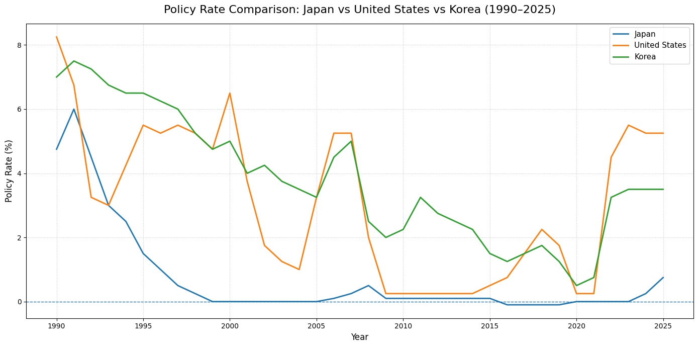 2025년 12월 19일, 일본은행(BOJ)은 기준금리를 0.5%에서 0.75%로 0.25%p 인상하며 30년 만에 0.5%의 벽을 넘어섰습니다. 이는 일본 경제의 장기적인 디플레이션 탈출 시도를 의미하며, 글로벌 금융시장에 적지 않은 파장을 예고하고 있습니다. 특히 한국 경제는 엔화 가치 변동, 자본 유출 가능성, 수출 경쟁 심화 등 다양한 측면에서 영향을 받을 수 있습니다.